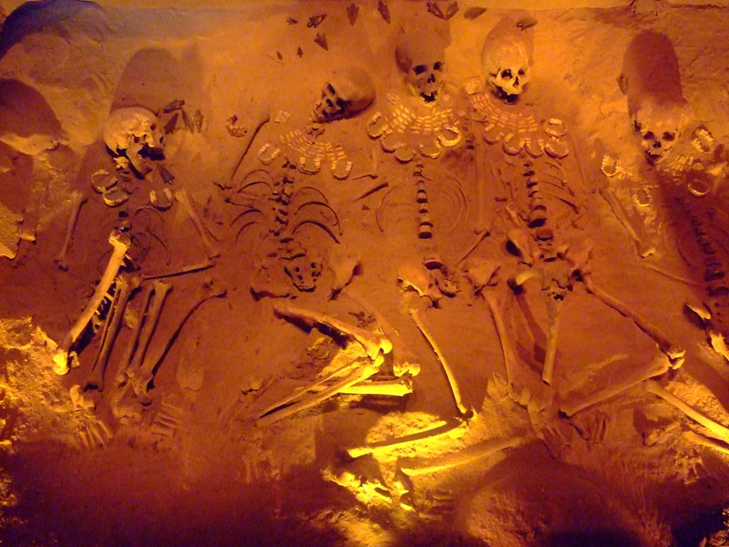 15) Teotihuacan Museum - A replica of the sacrificial victims found in the Pyramids wearing human jawbones.